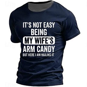 男性用 テキスト Tシャツ 半袖 Tシャツ 3Dプリント クルーネック シャツ 日常 日常 祝日 ダークブルー 夏 春 衣類 S M L XL XXL XXXL