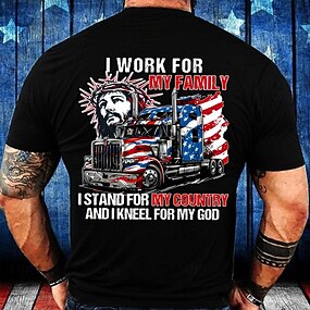 男性用 車載 レタード アメリカの米国旗 イエス Tシャツ ティートップ 半袖 Tシャツ クルーネック シャツ スポーツ クラシック カジュアル ストリート スポーツ・アウトドア ブラック アーミーグリーン ダークブルー 夏 春 衣類 S M L XL XXL