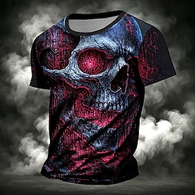Halloween 男性用 スカル 3D印刷 3D Tシャツ 半袖 Tシャツ 3Dプリント クルーネック シャツ 誇張された デザイナー ホラー パーティー ストリート カジュアル ルビーレッド パープル グリーン 夏 春 オールシーズン 衣類 S M L XL XXL XXXL