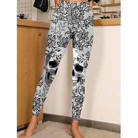 女性用 レギンス 旅行度假风 ヴィンテージ ファッション 全長 ハイウエストPantsHalloween グラフィック スカル ハロウィーン プリント ソフト 高通気性 伸縮性あり フォーマル バケーション ストリート オフホワイト 春 秋 冬 スリムフィット