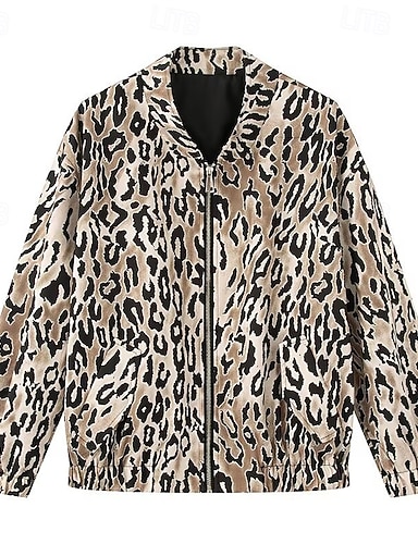 女性用 カジュアルジャケット 快適 ジッパー プリント ヴィンテージ ファッション レオパード 学校 アウトドア バケーション 家 ショート 野球の襟 レギュラー 長袖 アウターウェア ヒョウ柄 春 秋