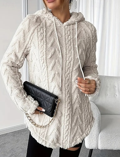女性用 プルオーバー フーディー スウェットシャツ 平織り ストリートファッション カジュアル シェルパフリース 長袖 フード付き レギュラートップス ストリート 祝日 ドローストリング ブラック ホワイト ルビーレッド パープル ベージュ 秋 冬