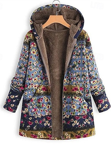 女性用 フリースの上着 コート パーカージャケット 保温 快適 ジッパー ポケット ファッション 近代の カジュアル フラワー お出かけ 週末 ジッパ- レギュラー フード付き レギュラー 長袖 アウターウェア ブルー グリーン 冬