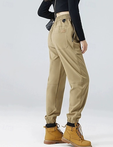 女性用 カーゴパンツ スラックス ストリートファッション カジュアル 全長 ナチュラルウエスト 平織り ポケット 弾性巾着デザイン 快適 アウトドア ストリート 祝日 暗灰色 アプリコット ダークブラウン グレー 秋 レギュラー