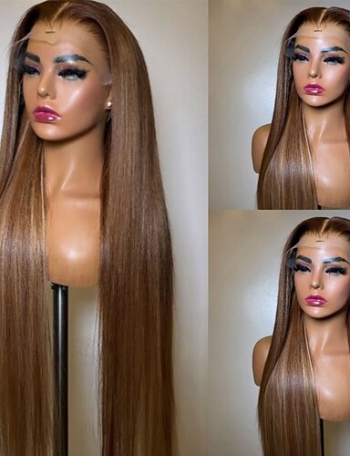 人毛 5x5の閉鎖 13x4レースフロント かつら 無料パーツ ブラジリアンヘア ストレート ブラウン かつら 130% 150% 髪の毛の密度 100% バージン グルーレス あらかじめ摘まれた 用途 女性 ロング 人毛レースウィッグ