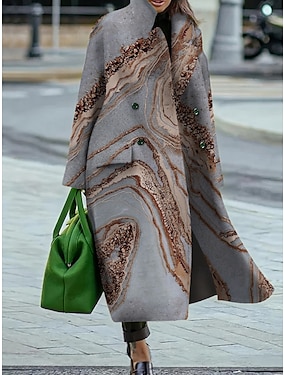 女性用 冬物コート コート クローク / 岬 防風 保温 ポケット カジュアル ストリートスタイル カラーグラデーション バケーション ワーク ストリート デイリーウェア シングルブレスト 折襟 ルーズフィット 長袖 アウターウェア カーキ色 秋 冬