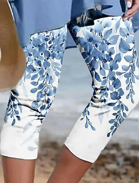 女性用 カプリパンツ レギンス 旅行度假风 ヴィンテージ ファッション カプリパンツ ハイウエスト グラフィック リーフ柄 勾配 プリント ソフト 高通気性 伸縮性あり アウトドア バケーション ストリート グレーグリーン バイオレット ライトブルー コーヒー 夏 春 スリムフィット