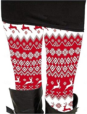 女性用 チノパン レギンス 心地よいレギンス 旅行度假风 カジュアル 全長 ハイウエストPantsクリスマス トナカイ プリント 保温 快適 伸縮性あり バケーション カジュアル 日常 ルビーレッド 春 秋 冬 スリムフィット
