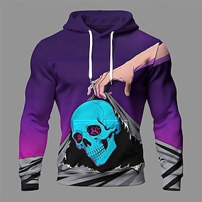Halloween 男性用 スカル パーカー ファッション 日常 フード付き バケーション パーティー ストリートウェア パープル ドローストリング ポケット プリント 秋 冬 デザイナー