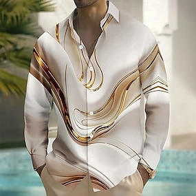 男性用 抽象的 マーブル ポロ 長袖 ポロシャツ ラペル カジュアル アウトドア ストリート アスレイジャー デイリーウェア 3Dプリント ボタン 春 秋 冬 ブルー パープル ゴールド