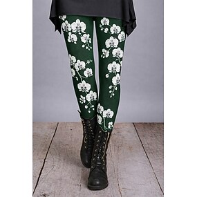 女性用 レギンス 心地よいレギンス 旅行度假风 ヴィンテージ カジュアル 全長 ハイウエスト グラフィック ローズ プリント 履き心地よい 快適 伸縮性あり カジュアル 日常 バケーション ディープグリーン グリーン 春 秋 スリムフィット