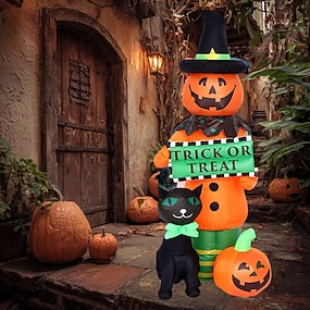 1個 1.8m/5.91フィート 2025年新作 ハロウィン カボチャと黒猫 LED インフレータブル エアモデル 屋内・屋外 中庭 芝生 ガーデンパーティー フェスティバル 雰囲気 装飾ライト 米国/EU/UK/AUプラグ