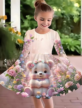 イースター 女子 3D フラワー グラフィック ドレス 長袖 夏 春 バケーション 日常 祝日 プリンセス 美しい 甘い 子供 4〜12年 カジュアルドレス A ラインドレス 膝丈 レギュラー