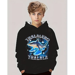 男の子用カジュアルパーカー、tung tung tung saur の面白い抽象プリント、長袖、春秋ファッション、ストリートウェア、キッズ 4~12 歳、フード付き、アウトドア、カジュアル、デイリー、レギュラーフィット