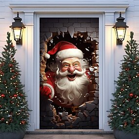 クリスマスドアデコレーション、ドアカバー、クリスマスサンタクロースドアタペストリー、ドアカーテンデコレーション背景、屋内/屋外ドアバナー、正面玄関用、農家