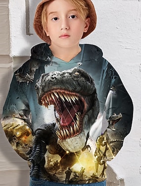 男の子 3D 恐竜 パーカー 長袖 3Dプリント 秋 活発的 ポリエステル 子供 4〜12年 レギュラー
