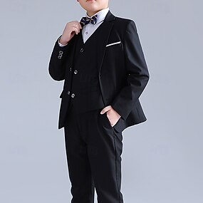 4個 リングベアラースーツ 男の子 子供 スーツ フォーマルスーツ ブレザー & ベスト & パンツ & ネクタイ フォーマル パーティー バレンタイン ファッション クール 純色 ポケット ブラック ネイビーブルー ポリエステル