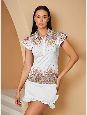 女性用 ポロシャツ ゴルフウェア レイクブルー バイオレット オレンジ ノースリーブ 日焼け防止 ライトウェイト Tシャツ トップス フラワー レディース ゴルフウェア ウェア アウトフィット ウェア アパレル