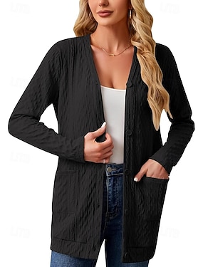 レディース軽量カーディガンセーターカジュアル長袖ニットカーディガンオープンフロントアウタージャケットポケット付き