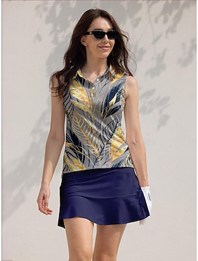 女性用 ポロシャツ 黄色 + 青 シルバー + オレンジ ノースリーブ レディース ゴルフウェア ウェア アウトフィット ウェア アパレル