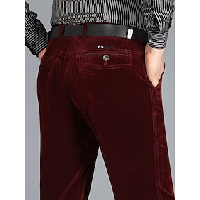 男性用 スーツ コーデュロイパンツ カジュアルパンツ ドレススラックス ソリッド 全長 オフィス ワーク ビジネス ズボン カーキA ブラック ハイウエスト マイクロエラスティック
