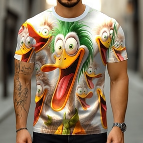 男性用 3D おかしい あひる Tシャツ 半袖 Tシャツ 3Dプリント クルーネック シャツ 誇張された デザイナー パーティー 祝日 ホワイト 夏 春 衣類 S M L XL XXL XXXL