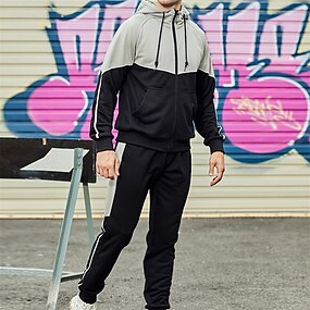 男性用 トラックスーツ スウェットパンツ ジップアップフーディー ポケット カラーブロック スーツウェア 秋 ブラック アーミーグリーン ジム いい結果になる スポーツ 防風 長袖 スポーツ アクティブウェア マイクロエラスティック レギュラー