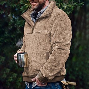 男性用 スウェットシャツ ポーラーフリース ブルー ブラウン スタンドカラー カラーブロック パッチワーク ポケット スポーツ 日常 祝日 ポリエステル ストリートファッション ベーシック カジュアル 秋冬 衣類 パーカー トレーナー 長袖