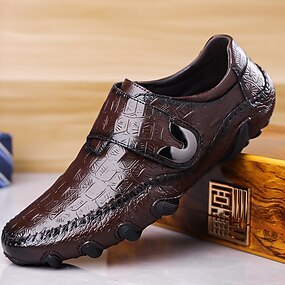 メンズブラウンクロコダイル柄スリッポンシューズ、ベルクロストラップ付き - スタイリッシュで快適、カジュアルウェアやアウトドアアドベンチャーに最適