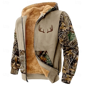 男性用 カモフラージュ しか フリース フーディーズ ファッション エスニック 長袖 フード付き パーティー ハンティング ブラック ブラウン ドローストリング 秋 冬 デザイナー