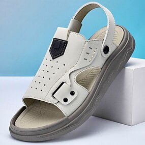 調節可能なストラップと通気孔を備えたメンズホワイトスポーツサンダル - スポーツやカジュアルウェアに最適な通気性と快適性を備えた履物