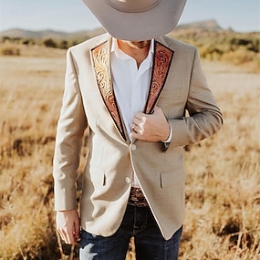 男性用 ブレザー ビジネス カクテルパーティー ウェディングパーティー ファッション カジュアル 春 秋 ポリエステル カラーブロック パッチワーク ポケット 快適 シングルブレスト ブレザー ブラック ベージュ