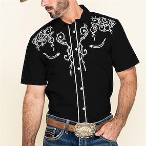 男性用 フラワー グラフィック シャツ ウエスタンシャツ カウボーイシャツ 半袖 ファッション ストリートファッション デザイナー アウトドア ストリート 日常 夏 春 折襟 プリント ブラック ホワイト ルビーレッド
