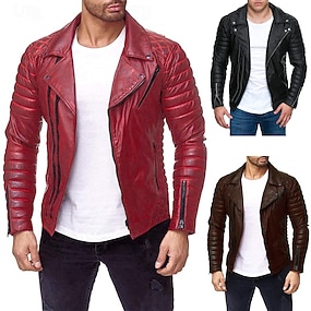 男性用 レザージャケット トランジションジャケット バイカージャケット オートバイのジャケット バケーション 日常 防風 保温 ポケット 秋冬 平織り ファッション クラシック ラペル レギュラー 合皮 ブラック ルビーレッド コーヒー ジャケット