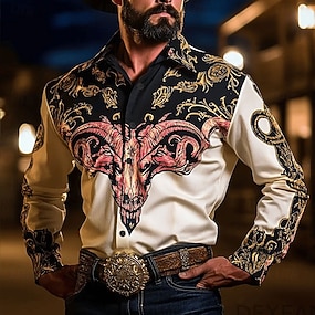 男性用 グラフィック ローズ シャツ ウエスタンシャツ カウボーイシャツ 長袖 ファッション ストリートファッション デザイナー アウトドア 日常 秋冬 折襟 プリント ボタンダウン ブラック ホワイト カーキ色