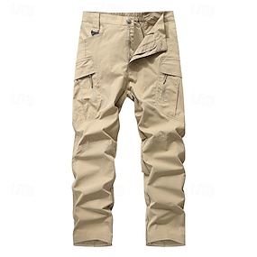 男性用 カーゴパンツ ズボン ボタン マルチポケット 平織り 耐久性 アウトドア 日常 キャンピング&ハイキング ファッション クラシック ブラック カーキ色