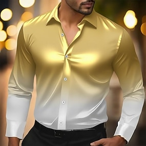 男性用 グラデーションカラー シャツ サテンシャツ ドレスシャツ 長袖 ヴィンテージレトロ バケーション 日常着 夏 春 秋 折襟 3Dプリント ボタンアップシャツ ブルー パープル ゴールド グリーン グレー