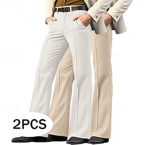 男性用 ズボン スーツ ベルボトム フレアパンツ ポケット 平織り 履き心地よい 高通気性 全長 結婚式 アウトドア ビジネス ファッション カジュアル ホワイト+カーキ カーキ+ブラック 伸縮性あり