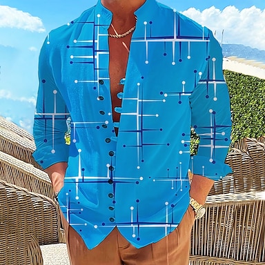 男性用 幾何学模様 ジオメトリ シャツ ボタンアップシャツ 長袖 ファッション ストリートファッション デザイナー アウトドア カジュアル 日常 夏 春 秋 スタンド プリント ブルー・グリーン ワイン ブルー グリーン グレー