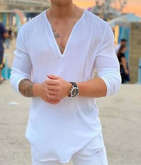 男性用 シャツ サマーシャツ ビーチウェア カジュアルシャツ Tシャツ 純色 アウトドア バケーション ブラック ホワイト ブルー カーキ色 長袖 Vネック 夏 衣類