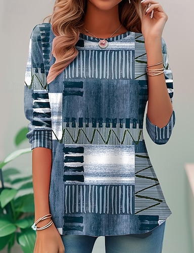 女性用 Tシャツ グラフィック 幾何学模様 ヴィンテージ ファッション スタイリッシュ 長袖 クルーネック レギュラートップス 日常 週末 プリント ピンク ブルー ブラウン カーキ色 夏 春 秋