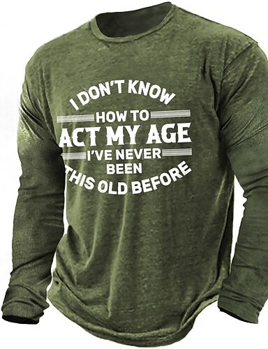 男性用ロングスリーブグラフィックTシャツ 面白い『自分の年齢の振る舞い方が分からない。こんなに年を取ったことがないから』Tシャツ