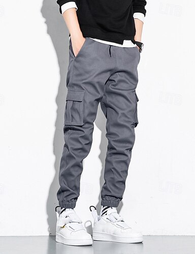 男性用 カーゴパンツ ジョガー ズボン ドローストリング 弾性ウエスト マルチポケット 平織り 耐久性 アウトドア 日常 キャンピング&ハイキング ファッション クラシック ブラック アーミーグリーン