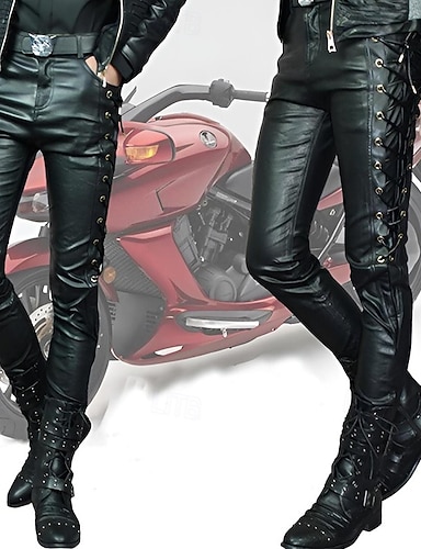 男性用 フェイクレザーパンツ ドローストリング ソリッド 屋外 スポーツ 全長 パーティー カジュアル ファッション カジュアル ブラック ルビーレッド 伸縮性なし