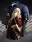 クリスマス メンズ サンタクロース プリント シャツ サンタクロース カジュアル 普段着 週末のお出かけ 秋 ターンダウン 半袖 バーガンディ、ダークネイビー、ネイビーブルー S、M、L 4方向ストレッチ生地 クリスマス