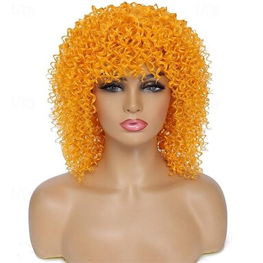 アフロウィッグ 70年代アフロウィッグ ブラック女性用 アフロキンキーなカーリーヘアウィッグ バング付き ソフトで自然に見える 短いアフロカーリーボリュームのある日常パーティー用ハロウィンウィッグ