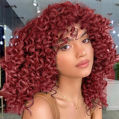 ヘア レッド アフロウィッグ ブラックウィメン グルーなし かぶっていけるウィッグ 10インチ カーリー アフロウィッグ バーガンディ 合成 パフウィッグ 日常 パーティー コスプレ コスチューム ハロウィン ウィッグ