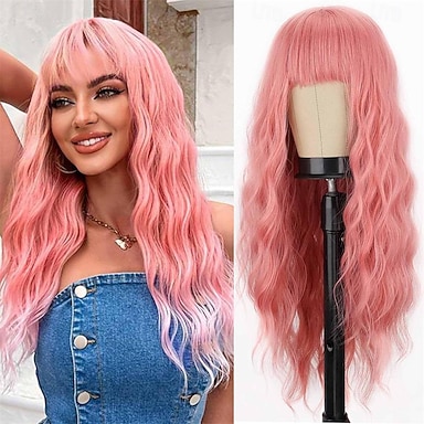 前髪付きウィッグ、女性用ロングウェーブウィッグ、合成カーリーウィッグ、女の子用ヘアリプレイスメントウィッグ、毎日のパーティー使用、26インチ