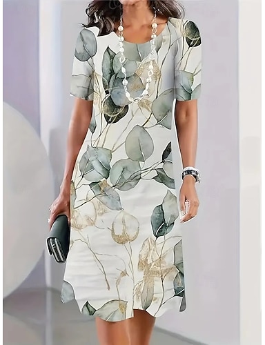 女性用 ミディドレス T シャツドレス シフトドレス サマードレス カジュアル フォーマル 日常 レギュラー フラワー 抽象的 半袖 クルーネック ルビーレッド ブルー グリーン 夏 春