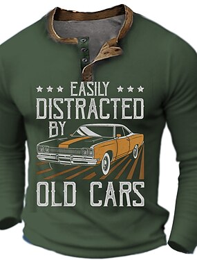 男性用 グラフィック 車載 レタード ヘンリーシャツ 長袖 3Dプリント ファッション 日常 カジュアル カジュアル 祝日 お出かけ 春 & 秋 アーミーグリーン ダークブルー ヘンリー ヘンリーTシャツ